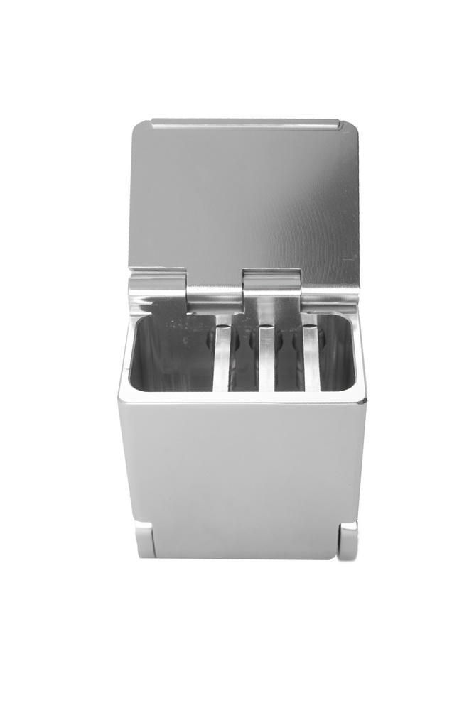 Asbak, klapbaar treinmodel van geanodiseerd aluminium. Verplicht bij elke buitendeur op schepen die onder ADN varen.