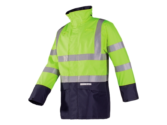 De Elliston is een vlamvertragende en antistatische signalisatie regenjas die afgewerkt werd in 2 contrasterende kleuren met reflecterende FR tape. De gebruikte stof is perfect waterdicht en bezorgt u dankzij de ademende coating nooit een klam gevoel.