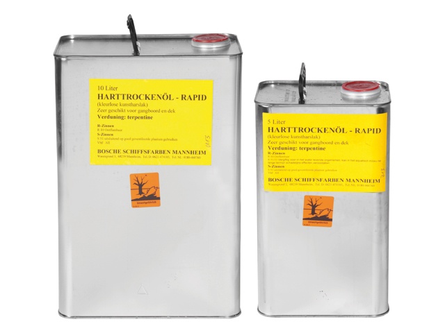 Snel drogend. Kleurloze, glanzende weer vaste lak. Voor de conservering van beloopbare vlakken zoals bijvoorbeeld gangboord, roefdek, enz. Zeer geschikt als toevoeging aan verven en lakken, voor sneller drogen en harden. Geeft tevens een mooiere glans. Geel etiket.