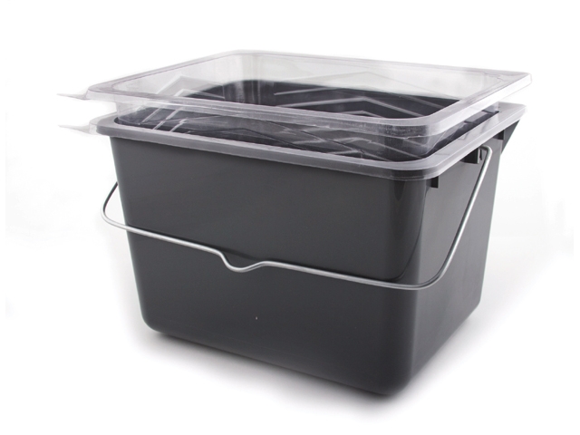 Handige kunststof inzetbakken voor verfemmer, geschikt voor kwast en roller. Verkrijgbaar in 2 verschillende afmetingen.