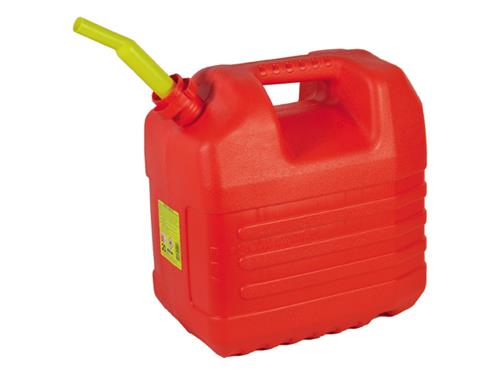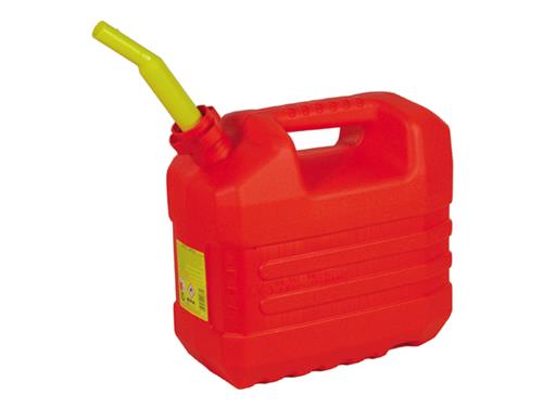 Jerrycan met schenktuit, olie- en benzinebestendig, compleet met schenktuit die door middel van de dop in de jerrycan geschroefd wordt.