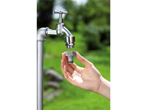 De Gardena kraankoppeling garandeert een vaste verbinding tussen kraan en slang.