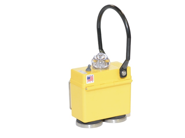 Mooi en degelijk ankerlicht met dubbele voeding, 2 magneetvoeten, schakelaar, comfortabele draagbeugel en kleine lens.