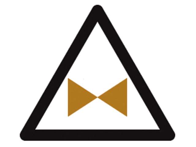Noodafsluiter Sticker, driehoekige sticker met symbool.