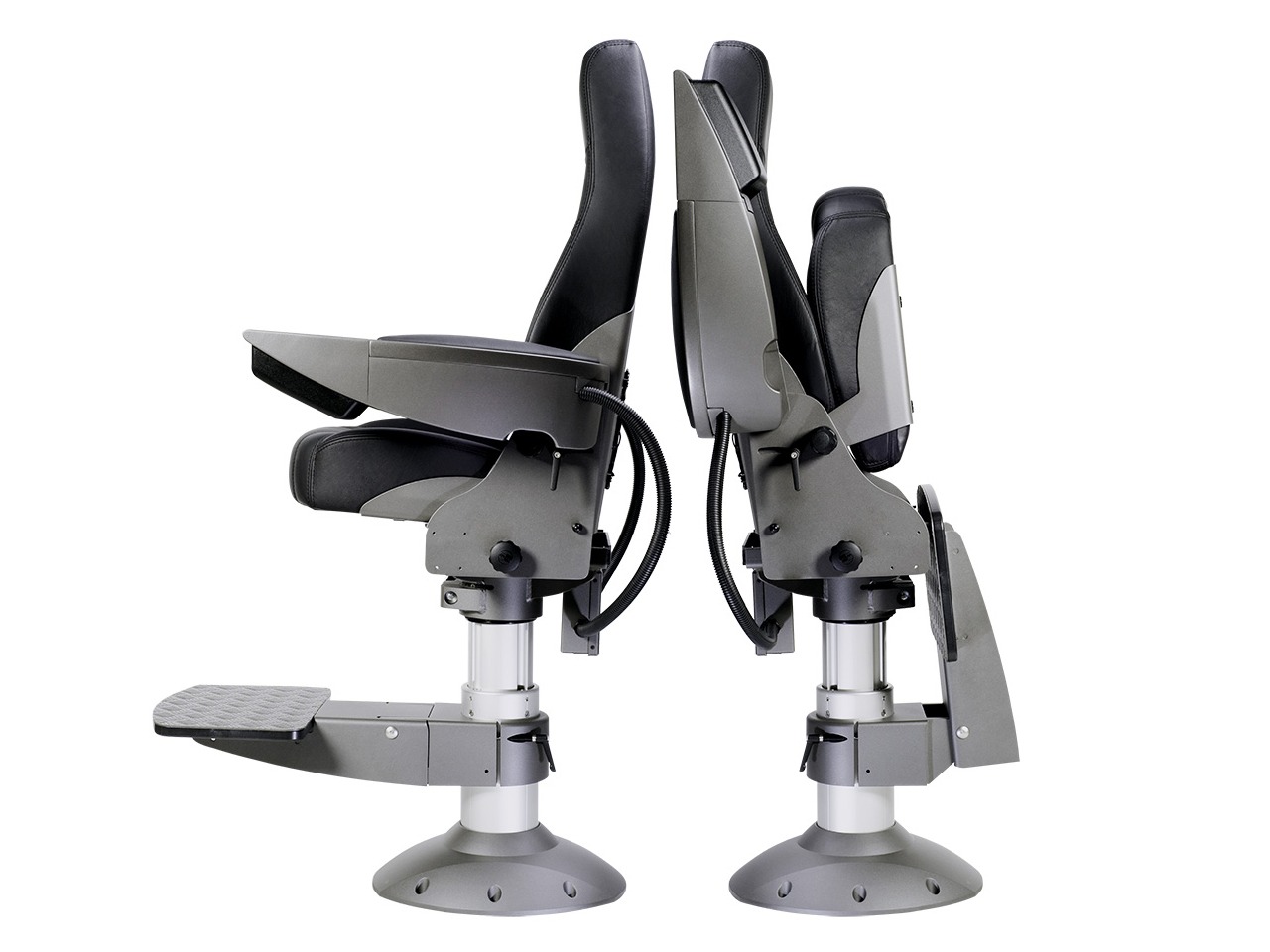 De NorSap 1700 stuurstoel is voorzien van 2 speciale brede armleuningen voor het inbouwen van bedieningshendels, schakel- en communicatieapparatuur. Professionele stuurstoel speciaal voor de zeevaart met zwaar onderstel, standaard voorzien van stoelslede en grote opklapbare voetensteun. Indien nodig, eenvoudig uitwisselbare kussens.