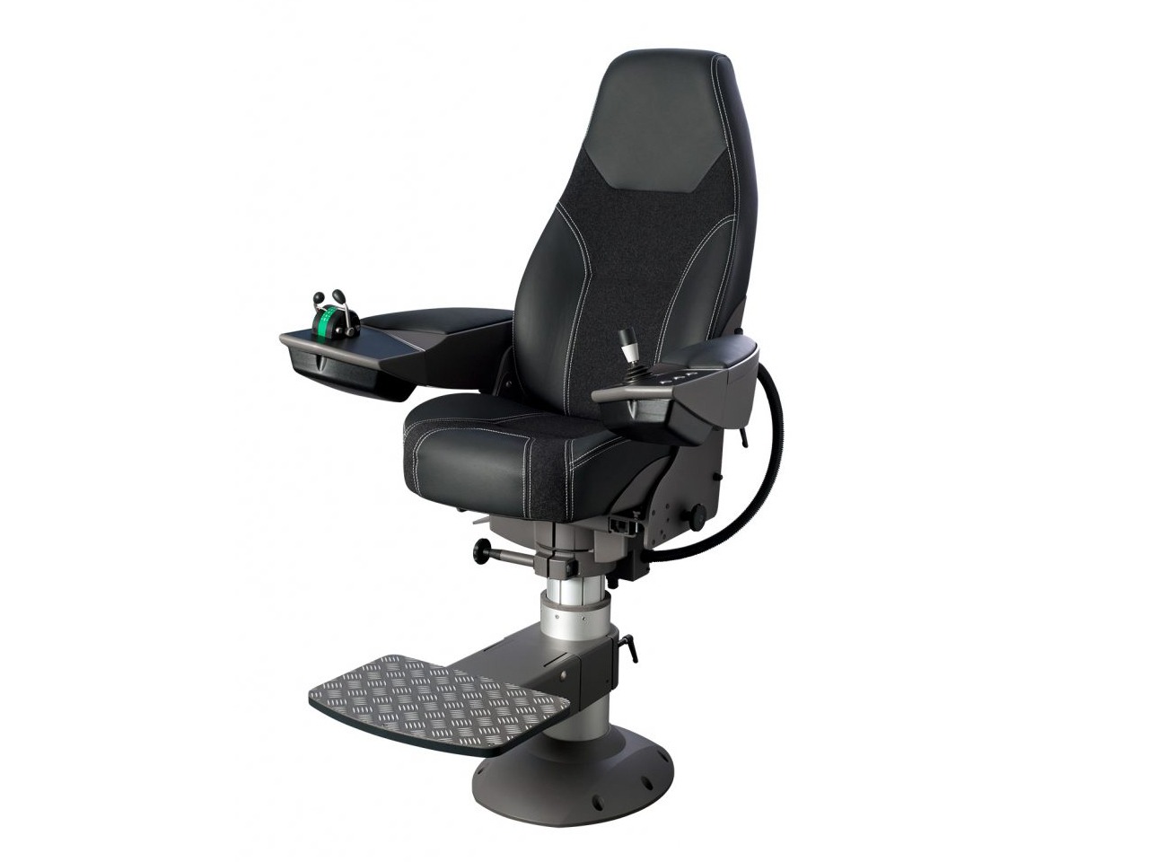 De NorSap 1700 stuurstoel is voorzien van 2 speciale brede armleuningen voor het inbouwen van bedieningshendels, schakel- en communicatieapparatuur.