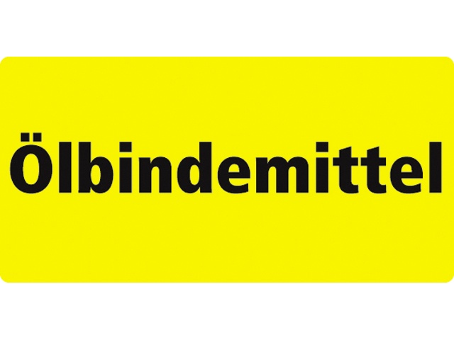 Gele sticker van zacht PVC met zwarte tekst “Ölbindemittel”.