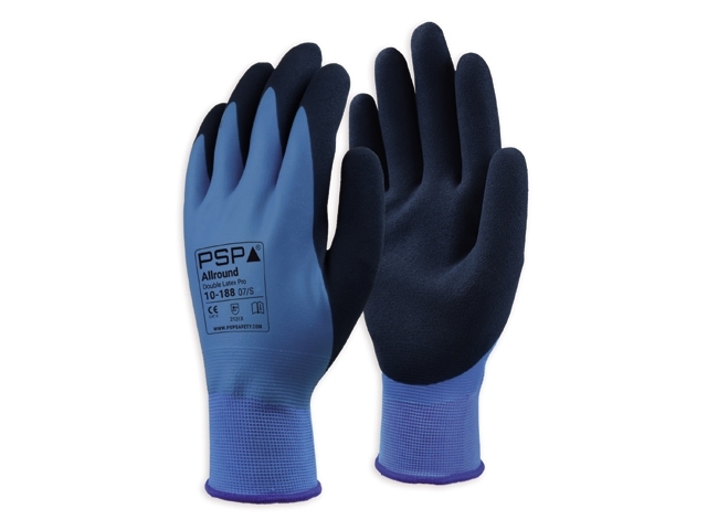 De PSP Allround Double Latex Pro 10-188 is een handschoen met een 13G Nylon liner bedekt met een dubbele latex coating. De eerste coating zorgt ervoor dat de handschoen waterdicht is, de 2e laag voor de extra grip en bescherming. Deze “Sandy Finish” zorgt voor een excellente grip in natte en droge omstandigheden. De handschoen is vloeistofdicht.