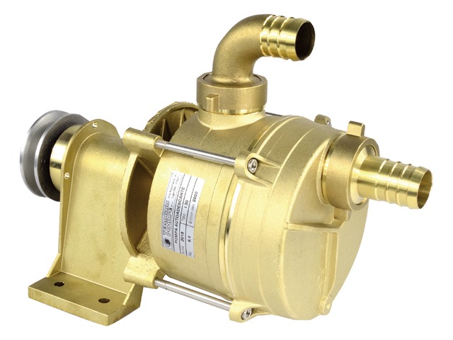 Degelijke zelf-aanzuigende zijkanaal waaier pomp voor schone vloeistoffen als gasolie, water, wijn, vruchtensappen, enz. met V-snaarschijf voor aandrijving door diesel- benzine- of elektromotor. Te gebruiken als koelwaterpomp of brandstof in de scheepvaart of industrie.