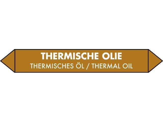 Sticker met de tekst “THERMISCHE OLIE” in witte letters. Heeft ook Duitse en Engelse tekst.
