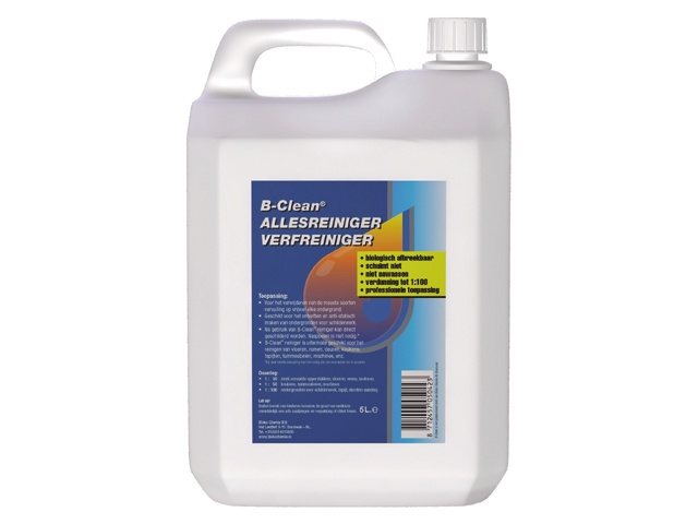 Een niet schuimende reiniger die speciaal is ontwikkelt voor de professionele schilder. B-Clean Verf / Allesreiniger is een fosfaatvrije en biologisch afbreekbare ontvetter. Het is de ideale vervanger voor ammonia. Het ontvet en maakt ondergronden voor schilderwerk antistatisch.