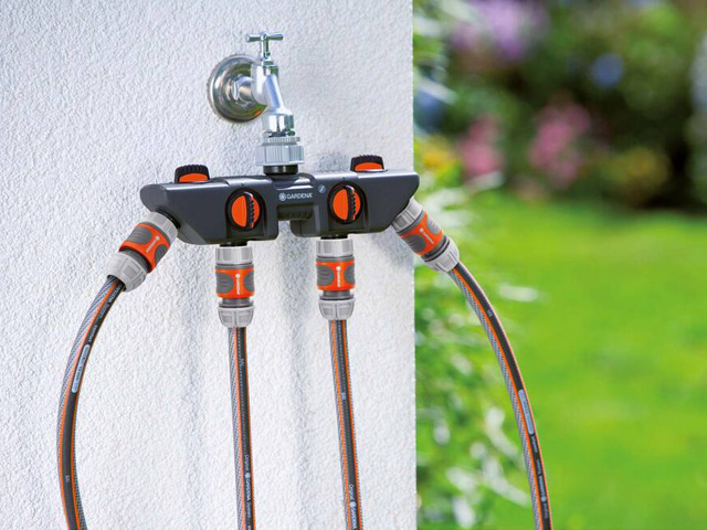 Met de Gardena waterverdeler 4 kunt u tegelijk meerdere aansluitingen gebruiken op één tappunt. De aansluitingen zijn traploos regelbaar en afsluitbaar.